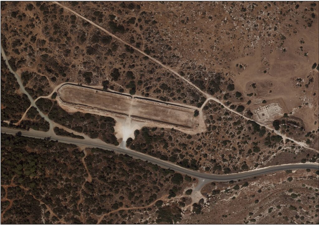 Στη νότια πλευρά του Σταδίου σώζεται στα δυτικά, τμήμα του υδραγωγείου που μετέφερε το νερό στο Κούριο από τις πλούσιες πηγές της περιοχής Ζανατζιάς.