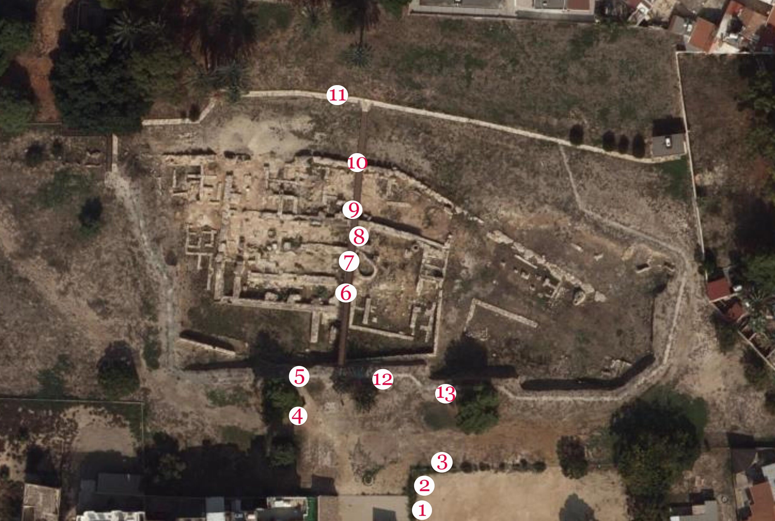 Ανάμεσα στα δύο ζεύγη ναών (1-2 και 4-5) περνούσε πλατύς δρόμος, που ερχόταν από τα νότια του Ναού 1 και 2. Στη συνέχεια περνώντας ανάμεσα στους Ναούς 4 και 5, ο δρόμος κατευθυνόταν προς την πύλη της πόλης στα ανατολικά.