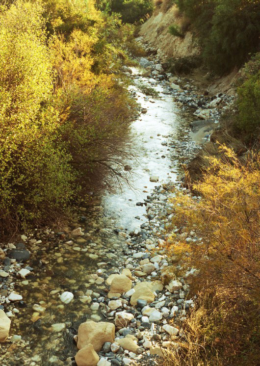 Σύμφωνα με τις ανασκαφές που διεξήχθησαν στους πρόποδες του λόφου καθώς και γεωμορφολογικές έρευνες, η πορεία του ποταμού ήταν αρχικά διαφορετική από τη σημερινή. Οι έρευνες έδειξαν συχνές μετατοπίσεις της κοίτης εξαιτίας της κλιματικής αστάθειας κατά τη διάρκεια της πρώιμης κατοίκησης του χωριού. Ο ποταμός παρείχε νερό, πέτρες και καλάμια.