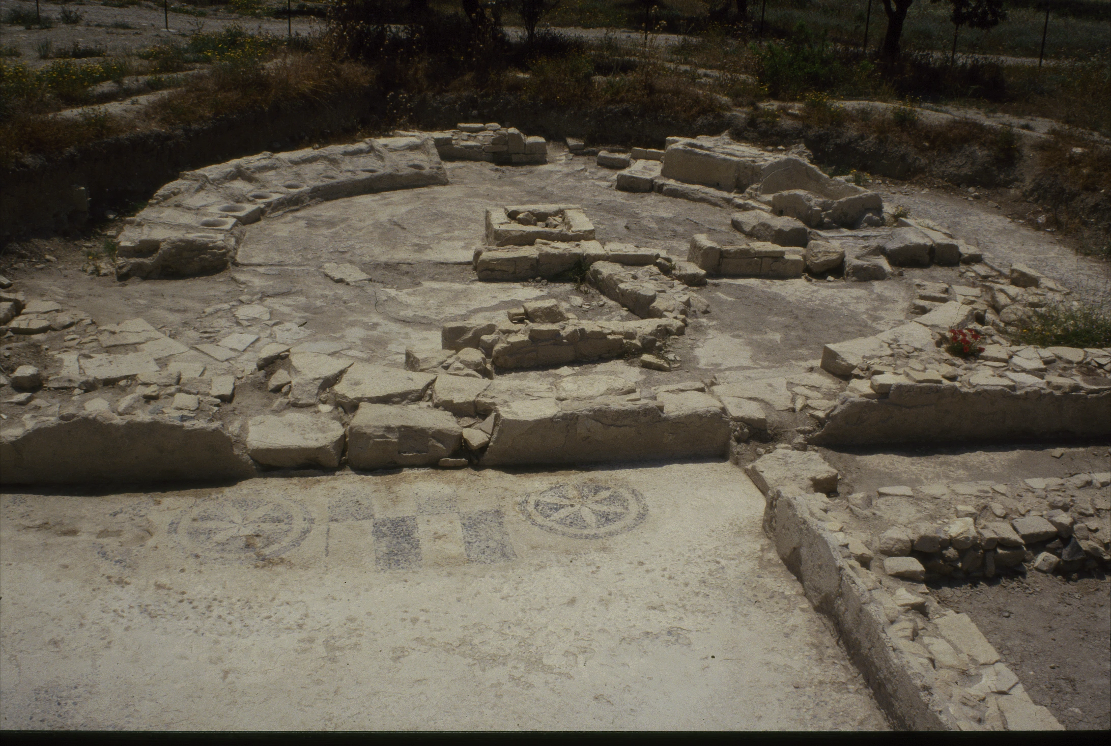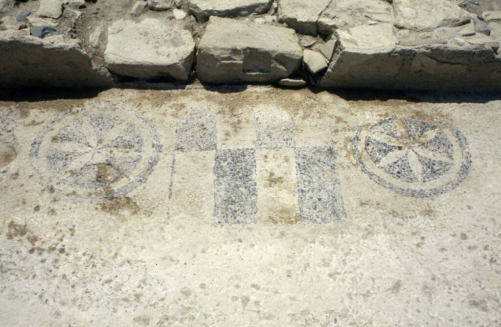 Τρία μικρότερα δωμάτια στα βόρεια της κυκλικής αίθουσας μπορούν να συσχετιστούν με χώρο υπηρεσίας ή αποθηκευτικής χρήσης, αποδυτήριο και ενδεχομένως δωμάτιο όπου γίνονταν εντριβές με έλαια. Τα δάπεδά τους είναι διακοσμημένα με ασπρόμαυρα βότσαλα τοποθετημένα σε γεωμετρικό μοτίβο. Το δάπεδο του ανατολικού δωματίου κοσμείται από ψηφιδωτό που απεικονίζει δύο λευκούς ρόδακες οι οποίοι περιβάλλονται από ασπρόμαυρα τετράγωνα.