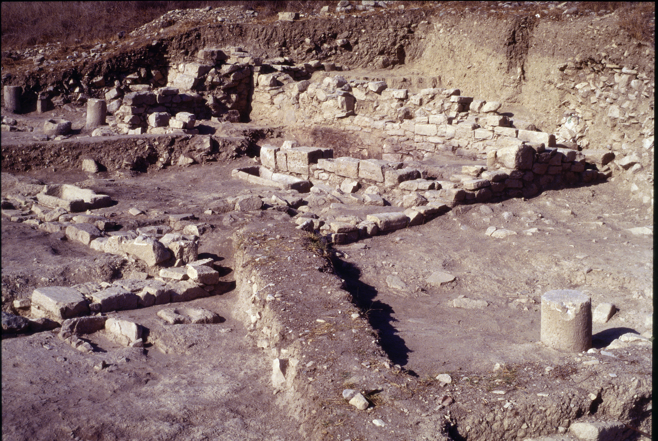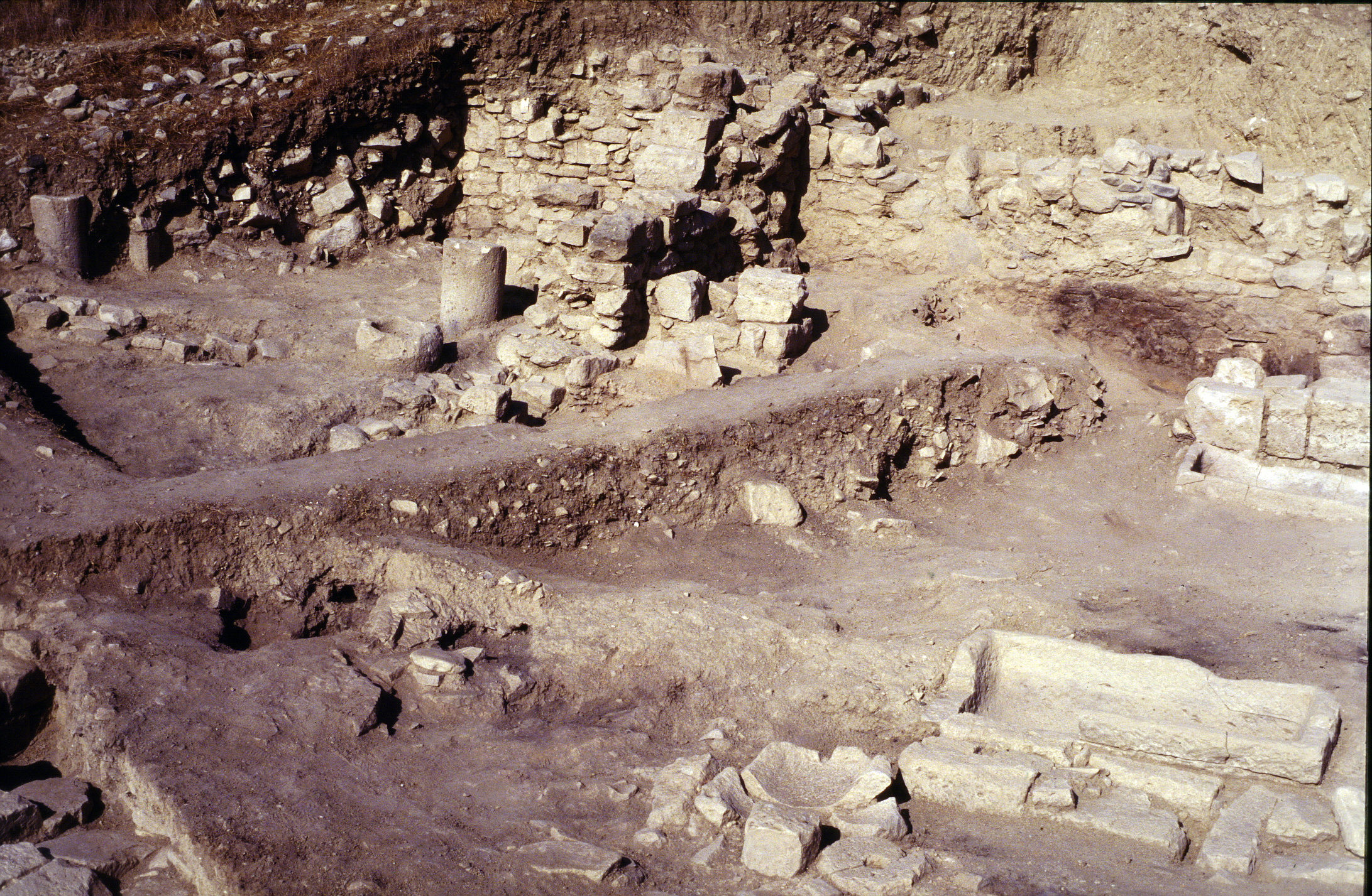 Στα νοτιοδυτικά εντοπίστηκε ένα διοικητικό μάλλον κτήριο, το οποίο αποτελείται από τρία επίπεδα. Το σύμπλεγμα τοποθετείται χρονολογικά από τον 1ο μέχρι τον 7ο αιώνα μ.Χ. Το πρώτο και χαμηλότερο επίπεδο του συμπλέγματος περιλαμβάνει έξι αίθουσες κάποιες από τις οποίες ήταν αποθήκες. Σε μια από τις αίθουσες βρέθηκε ένα πηγάδι και λίθινες λεκάνες. Μια σκάλα οδηγεί από το πρώτο στο δεύτερο επίπεδο, σε ένα μεγάλο λιθόστρωτο προθάλαμο. Το δεύτερο επίπεδο περιλαμβάνει τέσσερις αίθουσες με πάγκους. Από τον προθάλαμο μια σκάλα οδηγεί στο τελευταίο και ψηλότερο επίπεδο, το οποίο περιλαμβάνει εννέα συνολικά αίθουσες. Στο επίπεδο αυτό οι ανασκαφές έφεραν στο φως λιθόστρωτα δάπεδα, ποσότητες κεραμικής, ένα αμφορέα, και ένα χάλκινο σκεύος. Επιπρόσθετα, εντοπίστηκε ένα πιθάρι θαμμένο σε λιθόστρωτο δάπεδο, με το στόμιο του να προεξέχει. Κάποιες από τις αίθουσες του τρίτου επιπέδου εμφανίζουν επίσης ίχνη εστιών και δύο λίθινες λεκάνες.