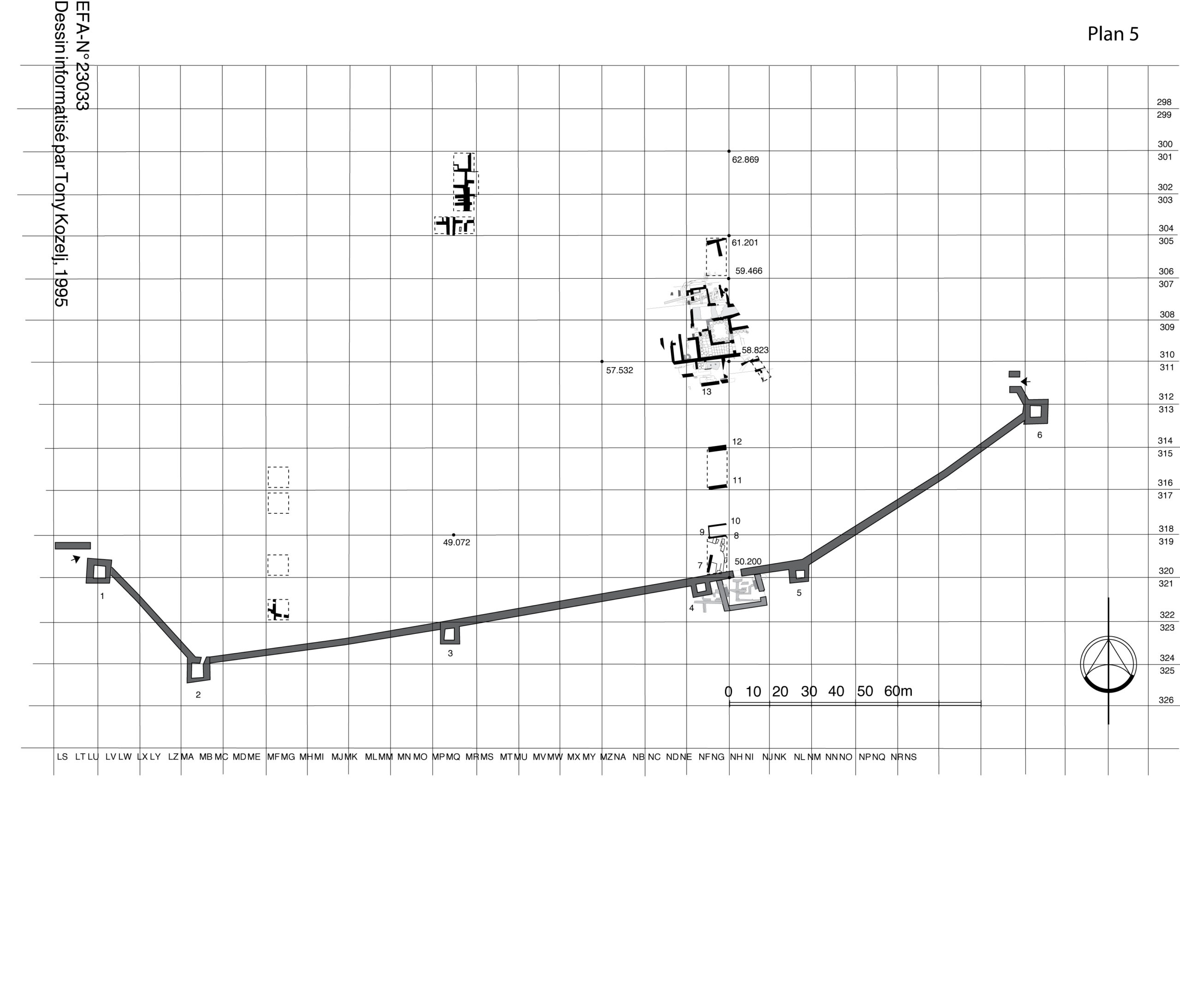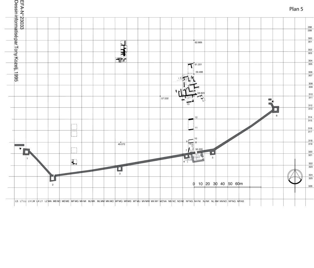 Τον 6ο αιώνα μ.Χ. κτίζεται στη νότια πλαγιά της ακρόπολης, ένα μεγάλο τείχος 265 μέτρων με έξι τετράγωνους πύργους. Ανάμεσα στον τέταρτο και πέμπτο πύργο από τα δυτικά, βρίσκεται η κεντρική πύλη. Τα τείχη επισκευάζονται τον 7ο αιώνα μ.Χ. και προστίθεται μπροστά από την κεντρική πύλη ένα οχυρωμένο πρόπυλο, για να ενισχύσει την άμυνα της.