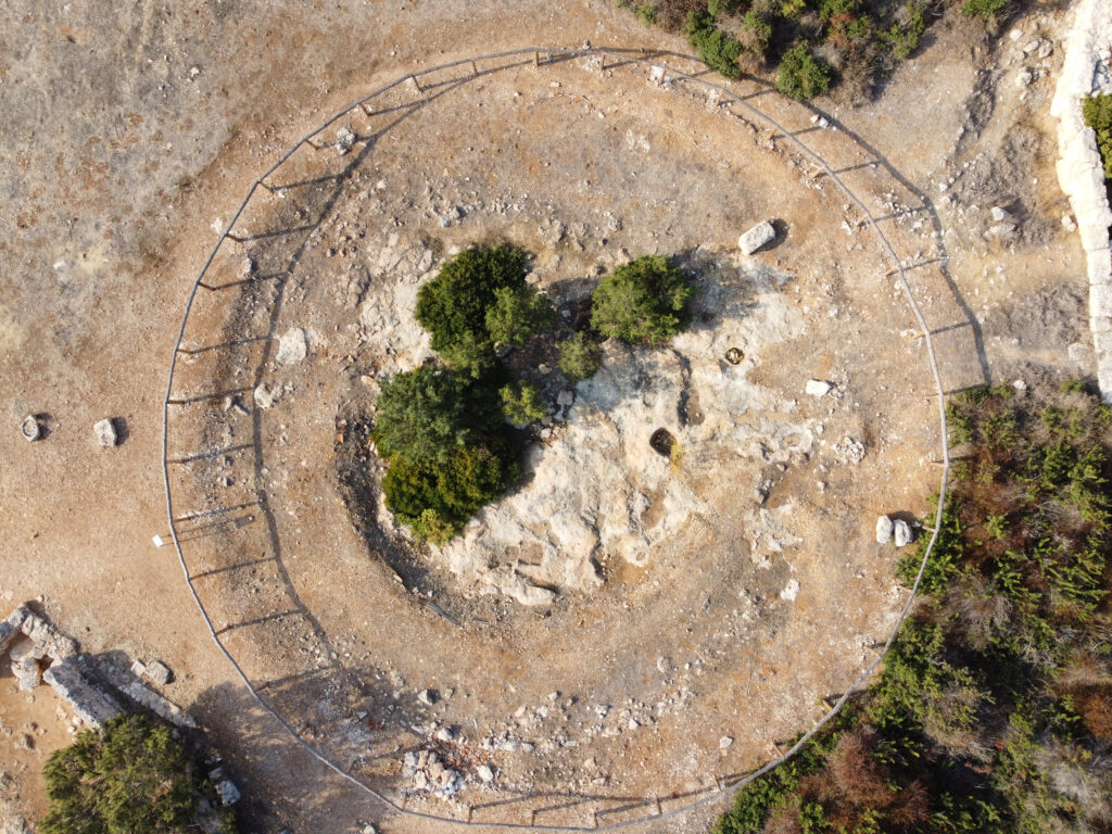 Το μνημείο αυτό είναι μοναδικό στην Κύπρο. Πρόκειται για ένα κυκλικό λιθόστρωτο διάδρομο επιχρισμένο με κονίαμα που περικλείει τμήμα βράχου. Στο βράχο αυτό υπάρχουν επτά λαξευμένα κοιλώματα όπου θα ήταν φυτεμένα τα ιερά δένδρα του Θεού, όπως η δάφνη και η μυρτιά. Ο χώρος αυτός, φιλοξενούσε ιεροτελεστίες με κυκλικούς χορούς που γίνονταν προς τιμή του θεού Απόλλωνα.