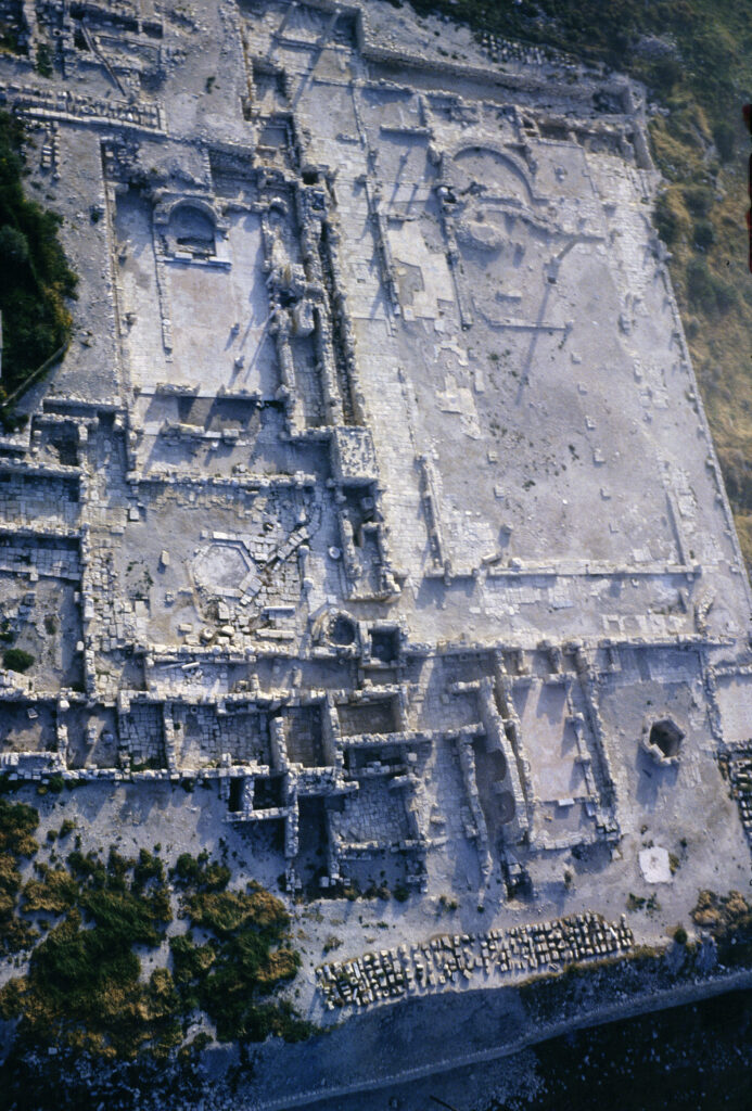 The episcopal complex was built in the first decades of the 5th century AD, during the time of Bishop Zenon. It occupies part of the civic basilica that was likely destroyed by the great earthquake of 365/370 AD.